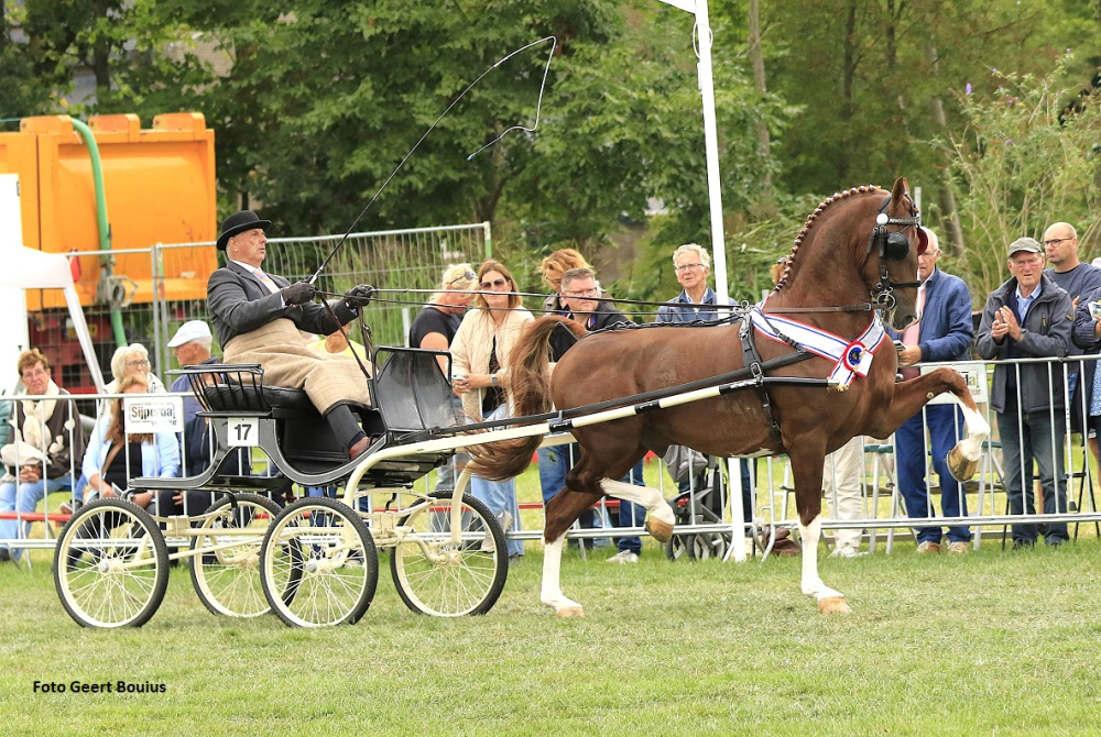 De finalewedstrijd van de nationale competitie ving aan met zeven jonge paarden. De winnaar stond vooraf al vast en was Lambertus Huckriede met de aangewezen 5-jarige hengst Palladium (v. Hubert VDM). De vos had al drie wedstrijden weten te winnen en won ook deze vijfde en laatste. De rondom sterk en ruim bewegende vos die ook had de hals er bovenop staan, kreeg de overwinning niet cadeau omdat Real Star (v. Knaller F) met eigenaar Erik van der Veen geweldig partij gaf en na de eerste omloop eerste stond. Real Star showde zich ook met hoge, ruime en lange passen aan het publiek. In het front mag hij een fractie meer terugkomen en dat koste hem op het laatst de overwinning tijdens het overrijden. Henk Hammers streed met Realist van Altrido (v. Innovatief) van Henk Bos ook mee om de koppositie en bleef derde. Met 26 punten eindigde hij ook als derde in de eindstand achter Palladium met 30 punten en Real Star met 28 punten. Als vierde in het klassement eindigde Robbie van Dijk met de goedgekeurde hengst Relatief (v. Idol) van de combinatie Van Manen/Daniels. Dion ten Berge eindigde als vijfde door in de dag wedstrijd vierde te worden met Rosco P. Coltrane (v. Zuidwester). Met een gelijk aantal punten van 19 was de zesde plaats in de eindrankschikking voor Richard Hofstra met Platina (v. Heliotroop) van Ule Haarsma. Bron: De Paardenkrant.