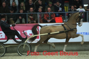 13-01-2015 | In het weekend van 3 en 4 januari werden de eerste wedstrijden voor de aangespannen tuigpaarden alweer verreden. In het middagprogramma van de KWPN hengstenkeuring te Ermelo op zaterdag werden zes rubrieken verreden en daags erna op zondag had indoor Zuidbroek tijd ingeruimd voor vier wedstrijden tussen de springrubrieken in. In Ermelo kwamen vijf combinaties in de baan voor de lage limietklasse en na overrijden kon Harry van Middelaar dekhengst Crescendo HBC als eerste opstellen, gevolgd door Derk Jan Mekkes met PrimeVal Vayacondios. Als derde kon Leendert Veerman opstellen met Besterly Eribo. De hoge limiet ging na een tweestrijd tussen Derk Jan Mekkes met Varanno en Jan van der Vegt met Atillos naar eerste genoemde. De grote vos klom er lekker in en maakte geen fouten. Zuidbroek kende één limietklasse waarin Niek Alting sterk voor de dag kwam met de deftige Emerson en de overwinning opeiste voor Derk Jan Mekkes met Vayacondios. Waar Leendert Veerman in Ermelo de ereklasse wist te winnen, moet hij met Besterly Amadeus een dag later genoegen nemen met een niet geheel terechte vierde plaats. De winst was voor Evelien Corbeek met de ruime bewegende Only the Lonely en dat was wel terecht te noemen. De grote vos was in Ermelo al tweede geworden, waar hij Zilver D met John Donck achter zich hield en was dus in vorm. Voor Primeval Wizzkid’s Gonda was in Zuidbroek het zilver en Nathalie Buwalda werd derde met Like to Win. Emerson was……