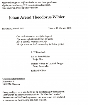 | Ons bereikte het bericht dat Dhr. Wibier is overleden.