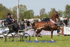 10-05-2015 | vandaag 10 mei werd onder ideale omstandigheden de 35e editie van het concours te Marum verreden. De nieuwelingen van regio Noord kwamen in twee groepen in actie, waarna de beste negen voor de finale uitgenodigd werden. Dit leverde een bijzonder mooie strijd op, die in het voordeel beslecht werd van de Unieko-nazaat Gerianne M. Peter Stevens reed de makkelijk en royaal lopende vos. Peter werd de door Meijer uit Orvelte aangeboden om te rijden. Helaas overleed Meijer in de dagen voor het concours, maar op nadrukkelijk verzoek van de familie, heeft Peter deze toch gestart. Een mooi eerbetoon. Tweede werd Gentleman (v. Saffraan) van Niek Alting. Deze kan geweldig bewegen en heeft en beste houding. Het geheel mag nog iets ontspannener om het beeld te completeren. Grenadier (v. Atleet) van Jurjen van de Velde nam plaats drie in en werd hier door Harm Jan Veenstra naartoe gereden. Ook deze heeft een goede slag van lopen. Han de Boer werd vierde met……