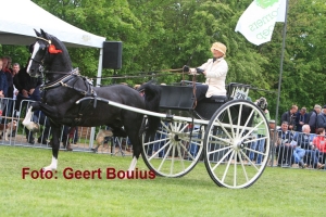 Bij de tuigpaarden van Noord stond de eerste competitiewedstrijd voor nieuwelingen op het programma en na een voorselectie uit twee groepen kwamen er negen combinaties terug voor de finale. Het was jammer dat Han de Boer met Erasmus hier niet bij zat, want deze nakomeling van Sir William Robert deed het zeker niet minder dan een aantal wel uitgenodigde paarden. Na de eerste omloop was Peter Stevens met Gerianne M (v. Unieko) absoluut de beste, gevolgd door Alberd van Dijk met Finalist (v. Victory), Niek Alting met Gentleman (v. Saffraan), Harm Jan Veenstra met Grenadier (v. Atleet) van Jurjen van de Velde en Jan Tienkamp met Garant K (v. Cizandro). Deze vijf gingen strijden om de hoogste prijzen, maar dat Peter ging winnen stond al wel vast, want Gerianne maakte zich zo deftig, ging steeds ruimer in de voorhand bewegen en bracht tevens de achterhand sterk onder de massa. Een plaatje van een tuigpaard! Een aantal van de overige finalisten had meer moeite om tot een goede verrichting te komen en vooral de talentvolle Gentleman kwam niet in balans. Ook Finalist sprong regelmatig weg, waar Grenadier wel een regelmatige koers liep en …….