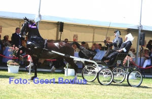28-06-2015 | Het 76e groot nationaal concours hippique van Dokkum vond dit jaar noodgedwongen plaats in het Harddraverspark omdat het gebruikelijke terrein gerenoveerd wordt. In de geschiedenis van CH Dokkum werd dit park eerder ook wel gebruikt voor de tuigpaarden met historische hoogte- en dieptepunten. Nu was het terrein misschien niet nationaal waardig vanwege een slecht gedeelte bij de ingang, echter het was eenmalig en zonder dit terrein was er simpelweg geen concours geweest. De organisatie had niet ingeschreven voor kampioenschappen maar wel een nieuwe rubriek toegevoegd waarin van elke discipline de twee beste ereklasse paarden streden om de Bonifatiusbokaal. De in pij gestoken lekenjury koos voor Brandy HBC in handen van Harry van Middelaar……