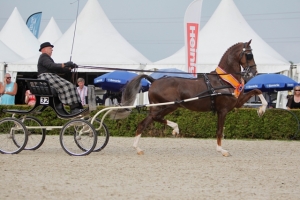 De zes hengsten kwamen één voor één de grote zandpiste opdraven waarna de wedstrijd een aanvang kreeg. Van begin aan viel Harry van Middelaar op met Delviro HBC die met ruime passen en een bijzonder mooi front rond ging. Ook Dylano van Black Horse BV, voor deze gelegenheid voorgesteld door Lambertus Huckriede, maakte zich groot en zette het voorbeen ruim weg. Heliotroop van Jaap van der Meulen liep met veel afdruk in handen van Henk Hammers en dan Fantijn van de gebroeders Van Manen met Robbie van Dijk. Deze was in het begin iets te heet, maar herpakte zich op het juiste moment. Albert Lueks reed Ditisem van de familie Muggen heel constant, hoewel het tempo iets lager mag. En als laatste Hertog Jan van Black Horse BV gereden door Mark de Groot. De bruine had beste momenten maar moest duidelijk wennen aan de entourage. Na de eerste beoordeling werd Delviro als eerste binnengeroepen, daarna Dylano, gevolgd door Fantijn. Dit, zo bleek na afloop, was in willekeurige volgorde! Heliotroop werd vierde voor Ditisem en Hertog Jan. Hierna begon de wedstrijd pas echt met drie finalisten. Harry van Middelaar en Delviro hadden de meeste fans en die lieten zich niet onbetuigd, vanwege het sterke optreden van de zwarte hengst. Dylano viel ver terug, hij kon het conditioneel niet volhouden en Robbie van Dijk had nu alle ruimte met Fantijn zodat deze steeds beter in de wedstrijd kwam en ook steeds hoger van de grond ging. Achter sterk en met een mooi front stuurde Robbie de vos rond. De paarden moesten lang lopen eer de beslissing viel en daar werd Delviro de dupe van. Fantijn werd uitgeroepen tot de nieuwe kampioen dekhengsten, waarna Delviro als tweede had moeten worden opgesteld, en dan pas Dylano, die nu tweede werd. Een spannende wedstrijd met een enerverend slot!