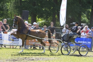 In de ereklasse ging Niek Alting weer op kop met Emerson en Manon Veerman was met de grote vos winnares bij de dames. Heel mooi tweede werd hier Grietje Naber met de netjes en foutloos bewegende Evita (v. Reflex M), nadat ze in de grote limietklasse over het hoofd waren gezien. Na drie overwinningen met zijn tweespan Wapenaar (v.Reflex) en Cantenaar( v. Manno), dit jaar, moest Gerard van der Meulen nu zijn meerdere erkennen in Susan Bouwman met Egberdina’s Armani (v.Roy M) en – Unitas (v. Nando). Gylian Nijenhuis won de jeugdrubriek met Cetrienes (v. Vulcano) van Rony Beuving.