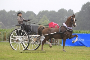 Zeven dames bonden de strijd met elkaar aan en hieruit formeerde de jury een viertal die zich mochten opmaken voor de allesbeslissende finale. Dat Margreet Bosma een titelkandidaat was had ze al laten zien in de ereklasse waar ze tweede werd met de er vrolijk en blij overkijkende vosruin. Maar ook Susan Bouwman heeft in Ebgerdina’s Armani (v. Roy M) van de combinatie Vogelzang/Bouwman een aansprekend en elegant paard. Als derde ging Tineke Rozeveld mee met Saterday (v. Private Dancer) en ook titelverdedigster Fokkelien Oldenburger en Evert V (v. Sterreljocht Surprice) mocht mee. Al snel werd duidelijk dat het tussen Margreet en Susan ging, omdat hun beider paarden het meest constant en vierkant over de benen gingen. Daarbij is Wonder rijker in het front dan Armani en heeft ook meer ruimte in de voorhand. Voor de jury, zo bleek achteraf, was het niet moeilijk de kampioen eruit te halen en dus werden Margreet en Wonder van de Ursahof de nieuwe kampioen. “Wagennummer 170 liep er echt uit. De vos is een bijzonder mooi damespaard met een heel fraai front erop en werd daarbij perfect voorgesteld. Ook de nummer twee is een mooi damespaard dat heel regelmatig loopt, maar is minder ruim in de voorhand.”
