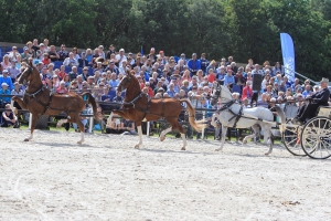 Het aantal stallen dat een randem kan formeren is niet zo groot en dus kwamen er maar vier langspannen in de baan. Ule Haarsma had met Endre (v. Morocco Field Marshall), Celebration (v. Manno) en Zavanno (v. Manno) de eerste beide wedstrijden gewonnen en ging ook nu voortvarend van start. Leendert Veerman had in Rijs de juiste afstelling van zijn langspan gevonden en zijn drietal ging het veel show en veel actie door de ruime zandbaan. Dat deed ook Derk Jan Mekkes met PrimeVal Varanno (v. Manno), - Wizz kid’s Gonda (v. Patijn) en – Bentley VDL (v. Larix). Jan Jordans had even meer moeite zijn paarden Generaal (v. Waldemar0, Ferro (v. Manno) en Barend (v. Marvel) voorwaarts te houden. Haarsma mocht als eerste weer opstellen met Veerman als tweede, dan Jordans en daarna Mekkes. Dat Mekkes als vierde mocht opstellen schetste toch behoorlijk wat verbazing omdat het heel goed liep en zelfs een potentiele winnaar leek! Haarsma en Veerman reden nog een keer af en het waren de Besterly paarden die de meeste aanspraak maakten op de winst met hun hoge knieactie en mooie fronten. Met name het achterpaard van Haarsma kwam te kort en in beweging en houding en dus ging de overwinning meer dan terecht naar Leendert Veerman.
