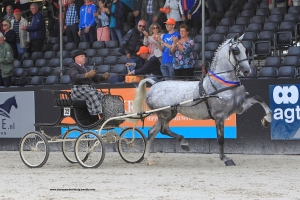 Vorig jaar werd de schimmel merrie Gardenia HBC (v. Victory) van de HBC stal van Jan Schep gehuldigd als Tuigpaard van het Jaar en afgelopen zaterdag 12 augustus won ze de Finale der Nationale op de nationale Tuigpaarden Dag. In handen van gastrijder Robbie van Dijk werd ze opnieuw gehuldigd, nu als Topsportmerrie 2017. Harry van Middelaar is de vaste rijder van Gardenia, maar koos ervoor zijn eigen fokproduct, Masters Den Roos (v. Tendens HBC) te rijden en werd derde achter Henk Hammers met Dendrini (v.Manno) van de familie Kooyman. Van Dijk stond voor het eerst op de hoogste trede van het ereschavot en ontving uit handen van Greet Bergstra bijbehorende Greet Bergstra bokaal.