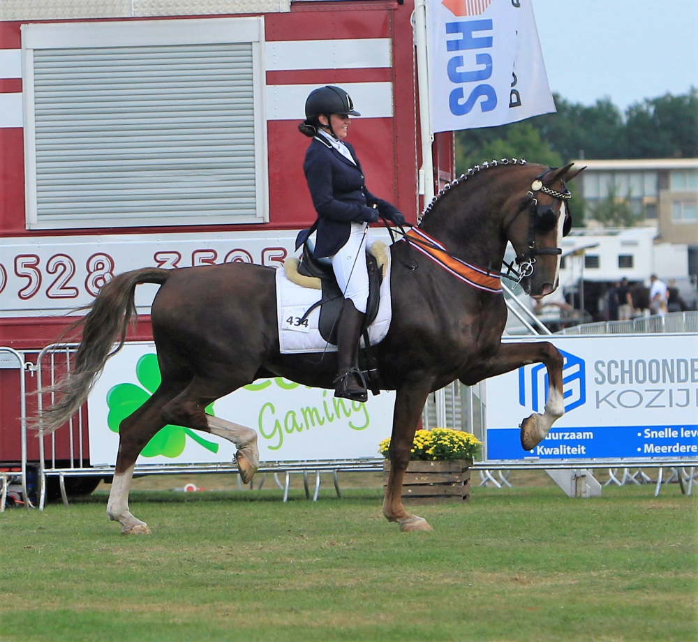 Vier van de acht dames die deelnamen aan het VERT-kampioenschap tuigpaarden gereden onder het zadel kregen een herkansing. Hoewel Margot Bakx op Hannalina (v. Crescendo) de meeste fans langs de kant had werd zij niet kampioen. Dat was weggelegd voor Marit Westerink-Stellaard op de machtige Grandioos (v. Atleet). De sterke vos was in vorm en liep de hele wedstrijd met krachtige passen door de baan en heeft een mooie zelfhouding. Voor de jury liep de winnaar er ver uit:” Van begin af aan was het onze favoriet. De vos was mooi in het front en trad achter sterk onder het lichaam. Het was een plaatje.” Magot Baks werd reserve kampioen en Evelien Corbeek werd derde op de grote Urgent zoon Big Ben. Voor Susanne Klinkhamer en Judex (v. Eebert) was de vierde plaats. Bron: De Paardenkrant.