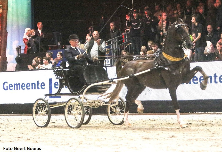 Het was Henk Hammers die als eerste mocht opstellen met de krachtig en ruim bewegende Heliotroop, die geen moment verzaakte en er hoog overheen keek met zijn mooie front. De donkere vos voelt zich helemaal thuis in deze entourage, vorig jaar won hij twee rubrieken en nu pakte hij de honderd punten. Marcel Ritsma, de winnaar van vorige jaar, maakte ook indruk met de actief bewegende Mondiaal en werd als tweede binnen geroepen voor de altijd vrolijk showende blonde vos Olivier met Nico Calis en Richard Hofstra met Lakei. Vijfde werd Derk Jan Mekkes met Montreal HBC, zesde Albert ten Berge met Ozandro en als zevende volgde Mieke ter Schure met Pronkheer DHB, die nogal onder de indruk was van het uitzinnige publiek.