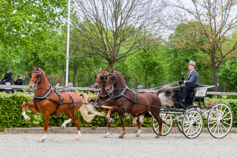 Maandag 9 juni, Tweede Pinksterdag, gaan vijf Klavertjes Drie in Eext strijden om punten in het kader van de meerspancompetitie ‘Rondje Drenthe om het Bronzen Bartje’. Bij een Klavertje Drie lopen er twee tuigpaarden als span voor een fraaie spider en een derde paard loopt er frank en vrij midden voor. Een prachtige aanspanning die we niet vaak op de concoursvelden zien.