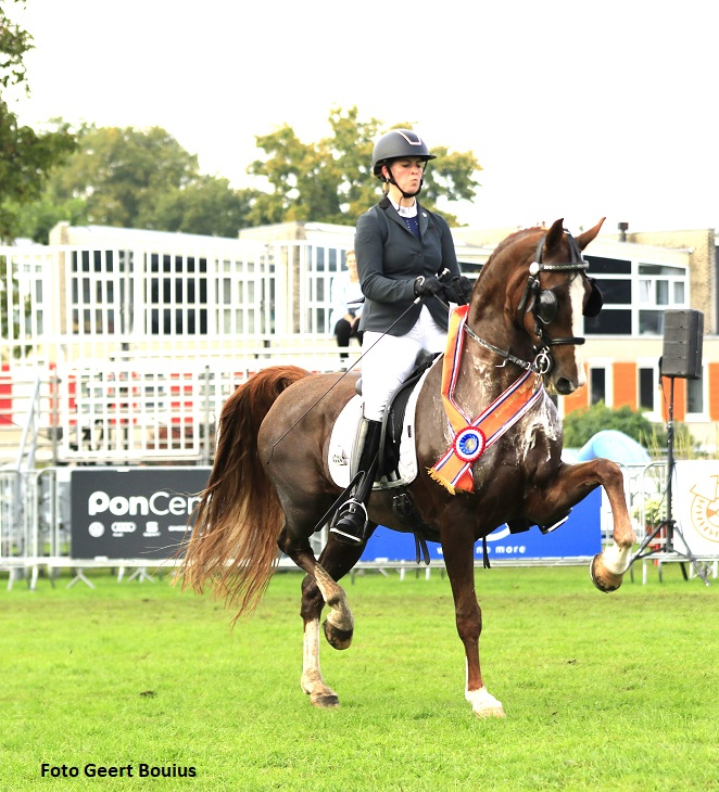 Het derde VERT-kampioenschap dat verreden werd in Hoogland was dat voor de tuigpaarden gereden onder het zadel. Alle zes deelnemende dames deden geweldig hun best waarna de beste vier nogmaals werden uitgenodigd om af te rijden voor de titel. Margot Bakx uit Liempde liet de vijftienjarige Hannalina (v. Crescendo HBC) mooi gedragen showen met een lang zweefmoment en een aansprekend front en hoofd. Zij werden terecht kampioen. Op Netflix (v. Fantijn) van de combinatie Beuving/Franchini liet Els Nijenhuis ook een sterke verrichting zien. Over de benen deed Netflix weinig onder voor Hannalina maar was minder verheven in het front en werd tweede voor Marit Westerink op de krachtig bewegende Grandioos (v. Atleet). Ada Donck liep op Relane (v. Lanto HBC) een hele sterke eerste omloop maar wisselde in de finale sterke momenten af met mindere en zakte naar de vierde plaats. Bron: De Paardenkrant