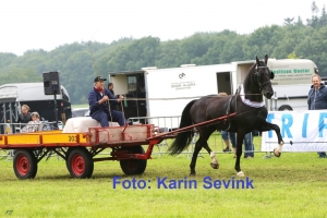 14-06-2015 | Tijdens het concours hippique “De Hynstedei” in Wijnjewoude won Henk Notenbomer uit Nuis vandaag het kampioenschap enkelspan voor de boerenwagen bij regio Noord. Zijn zwarte merrie Elfirose liet zich vrij en bij zien met goede bewegingen en een aansprekend hoofd met constant de oortjes erop. In de finale moest Henk het opnemen tegen de ervaren Berend Tjoelker met Dock die ook constant presteerde maar in hals en hoofdhouding moest toegeven, ook omdat Dock’s orenspel minder vriendelijk was. Er waren maar vier deelnemers met op de derde plaats Jitze de Jong met Candor en Jan Rozeveld reed Tjoelker’s tweede troef, Timberley, naar plek vier. Peter Stevens won voor de derde keer oprij de competitierubriek van Noord met Gerianne M en deed dat onbedreigd. De ereklasse werd door de arbiter beslecht omdat er verschil van mening was over Lammert Tel met Wervelwind en John Donck met Zilver D. ……