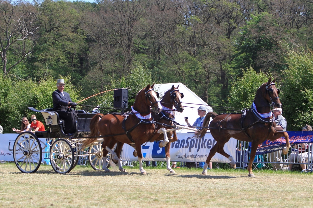 Tijdens het Pinksterweekend staat De Wijk bol van de paardenport. Drie dagen pony’s en paarden op landgoed Dickninge met op de maandag ook de tuigpaarden erbij. Dit jaar waren de nationale rijders weer te gast en dat leverde absolute topsport op. CH De Wijk had tevens de primeur voor de nieuwe meerspan competitie met zes Klavertje-3 aanspanningen die tegelijk streden om het VTN kampioenschap. Leendert Veerman uit Wittelte moest op het laatste moment twee ervaren paarden vervangen en spande Emerson (v. Manno) en Icoon (v. Colonist) van Maatschap Alting bij de geroutineerde Equifirst Eribo (v. Manno) en dit nieuwe trio liep regelrecht naar de titel.
