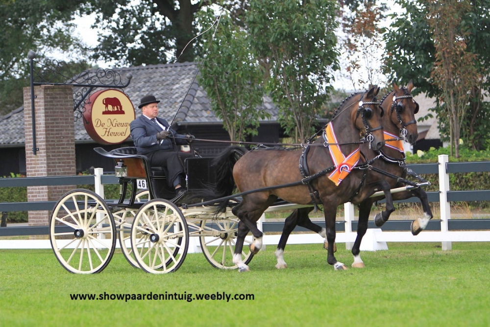 Freek Saris had zijn span Anton (v. Sire) en Heraut (v. Bentley VDL) goed in vorm voor deze kampioenswedstrijd en liet ze als een echte eenheid showen. Mooi gelijk in hals- en hoofdhouding liepen de bruinen regelrecht naar het kampioenschap.