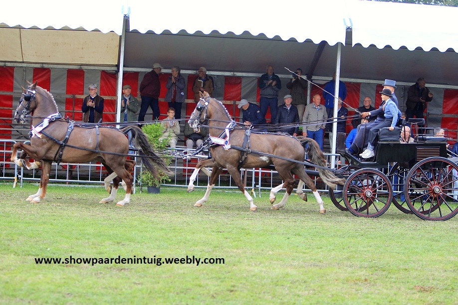In de voorlaatste competitiewedstrijd voor tweespannen werd Henk Hammers met Funita en Heliotroop VDM op kop geplaatst, maar waren niet helemaal gelijk in hoofdhouding. Ook bij het als tweede opgestelde span Imposant en Gardenia HBC gereden door Ule Haarsma ontbrak deze keer de echte eenheid. Het jonge span van Derk Jan Mekkes daarentegen liep wel keurig recht gesteld met veel gelijkheid in front en beweging en leek op weg naar een zekere eerste plaats. Het mocht niet zo zijn want vader en zoon PrimeVal Bentley VDL en Jaims H kwamen niet verde dan de derde plaats.