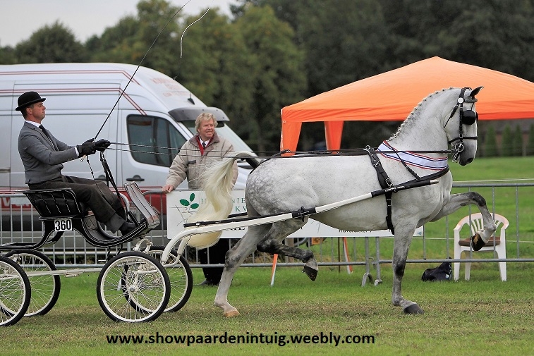 Hij heeft de schimmelmerrie Gardenia HBC (v. Victory) vanaf de zomer maanden al in grote vorm en won vorige week het kampioenschap fokmerries al en nu ook heel overtuigend de titel bij de 6- en 7 jarigen. Vier van de negen deelnemers mochten uitmaken wie kampioen zou worden. Harry met zijn schimmelmerrie, Henk Hammers met Heliotroop VDM (v. Colonist) van Jaap van der Meulen, Mark de Groot met Hertog Jan (v. Cizandro) van Blackhorse BV en Derk Jan Mekkes met PrimeVal Havanna (v. Bentley VDL). Gardenia draafde met veel kracht en ruimte in haar bewegingen en doet dat tevens met veel front. De hengst Heliotroop is ook een ras tuigpaard dat veel actie ontwikkeld en met veel oprichting loopt. In de finale raakte hij een paar uit balans. Hertog Jan, ook een goedgekeurde KWPN-dekhengst, lukt het maar nooit om een hele wedstrijd vlak te blijven. Hij werd vierde achter Havana die een hele constante wedstrijd op de mat legde met veel afdruk in haar bewegingen. Gardenia liep foutloos en was zonder twijfel de winnares.