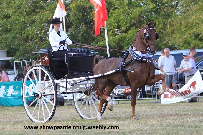 Zaterdag 20 juli waren de tuigpaarden waarschijnlijk voor het laatst te bewonderen op de Paardendagen van De Westhoek in Dwingeloo. De regen kwam met bakken uit de hemel maar het deerde Manon en Emerson niet. Hij is de laatste weken in topvorm en was net als een week geleden in Tolbert, ook nu niet de verslaan. Samen met Fera Lueks met Ditisem (v. Roy M) en Martine Lucas met Hugo (v. Patijn) van Albert van Dijk werd er overgereden voor het kampioenschap. Emerson liep met veel afdruk en het front er bovenop en werd kampioen. Ditisem maakte iets te veel foutjes en werd derde achter Hugo