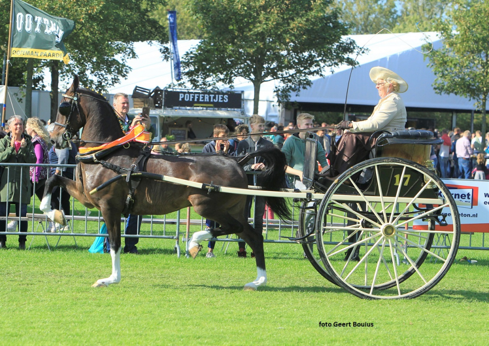Ook de ereklasse schreef Mark de Groot op zijn naam met de zwarte hengst Dylano (v. Plains Liberator) van mede-eigenaar Black Horse BV. Heliotroop werd ook hier tweede, nu met Henk Hammers. Opvallend was de derde plaats voor El Nino B (v. Atleet). Hij werd deze wedstrijd gereden door Aaron Jay Fisher uit Pennsylvania Amerika. Aaron behoort tot de Amish gemeenschap die een aantal jaren geleden veel tuigpaarden via Roelof van’t Oever kochten. Aaron werd in 2015 kampioen van Amerika met de goedgekeurde KWPN hengst Globetrotter (v. Cizandro). Hij liep El Nino geweldig showen. Aaron blijft tot en met de Nationale Tuigpaarden Dag in Nederland en heeft meerdere tuigpaardstallen bezocht.