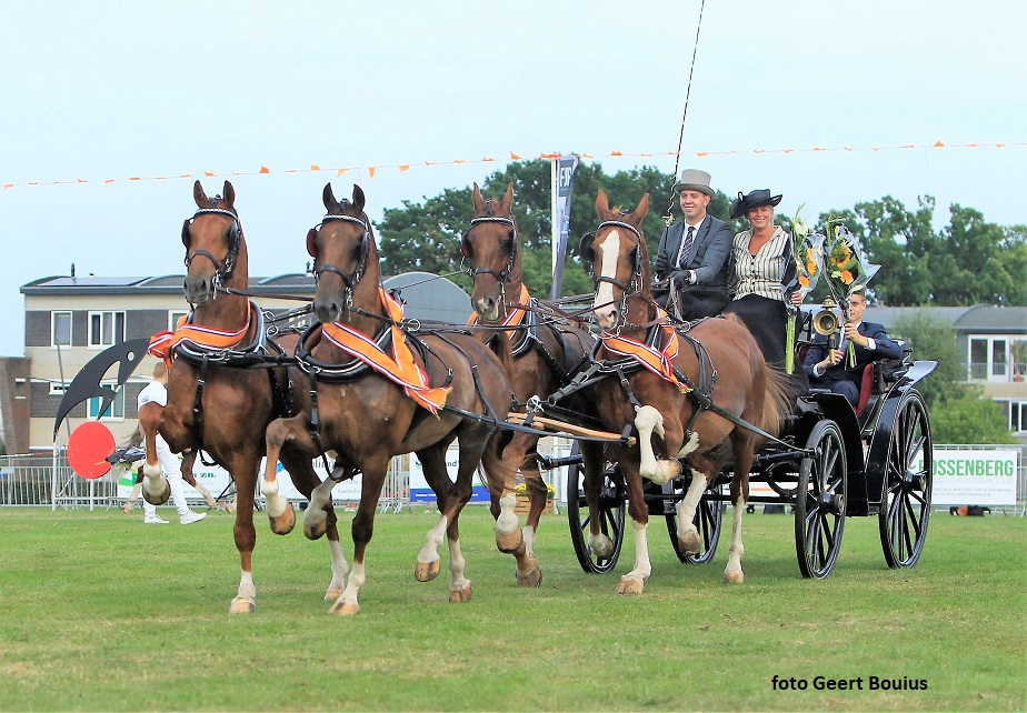 Met Luitenant (v. Fantijn) van de combinatie Ruinemans/Alting en Lord Liberty (v. Fabuleus) had Alting een imponerend span voorop en de ervaren Manno zonen Emerson en Action Quality Eribo achterin maakte het tot een makkelijk lopende eenheid. Eribo is van Leendert Veerman. Ook Davy Jordans debuteerde met een vierspan tuigpaarden en had in King (v. Fantijn) en Haarman (v. Manno) twee karaktervolle en tempo makende voorpaarden. Barend (v. Marvel) en Casanova (v. Manno) trokken de koets. Derk jan Mekkes had Briljant (v. Larix) geleend van Joop van Wessel en liep achterin naast Roelofsen Horse Trucks Hugo (v. Patijn). Voorop moesten RHT Jefferson (v. Eebert) en – Johnson (v. Manno) de show maken. Het vierde viertal bestond uit James (v. Manno) en Ebert (v. Unieko) van Teus van Laar en Dondroniem (v. Uromast) en Zavanno (v. Manno) van Jochum Boonstra. Een mooi samenwerking tussen rijders die zo toch mee kunnen doen. Teus van Laar zat op de bok.