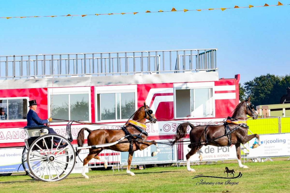 Hoe overtuigend kun je kampioen worden? Vijf langspannen kwamen in de slotrubriek opdraven voor deze laatste nog te verrijden VERT-titel van 2024 en de jury nodigde naast Ritsma ook Jan Jordans met Odan (v. Cizandro) en King (v. Fantijn) uit voor de allesbeslissende titelstrijd. De donkere vossen van Jordans met King voorop groeiden in de wedstrijd en liepen mooi verheven in het front en toonden actie en ruimte in hun bewegingen. Ze raakten wel een paar keer uit balans waardoor ze uiteindelijk reserve-kampioen werden. Dit betekende dat Ritsma kampioen werd met zijn elegante vossen, die van begin tot einde een foutloze koers liepen. Als de regelmaat van de klok marcheerden Jack Daniels en voorpaard Gerran over het grote terrein. Stuurman Ritsma kon zijn paarden zo makkelijk en ontspannen laten showen dat het leek of hij helemaal niet hoefde de sturen, alles ging vanzelf! De altijd vrolijke en blije Gerran was de blikvanger, maar achterpaard Jack Daniels was ook in topvorm met zijn zuiver vierkante manier van lopen. De jury sprak bij monde van Lammert Vinke van een zeer gelijk en elegant tandem dat foutloos presteerde. Bron: De Paardenkrant.