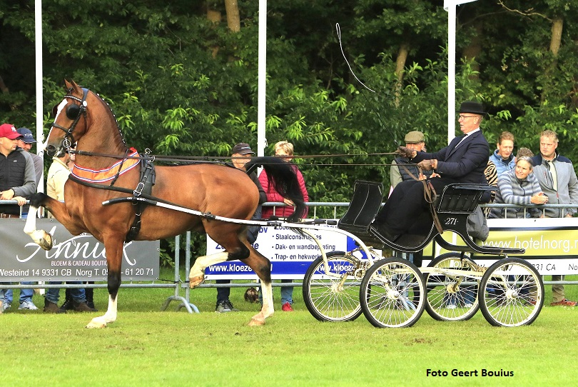 Het VERT-kampioenschap voor 5-jarige tuigpaarden kreeg op 29 juli in Norg een fantastische winnaar in het op en tot tuigpaard Pronkheer DHB (v. Eebert). De bruine klimt er hoog in met een machtig front en krachtige bewegingen. Hij bleef pronken en is een ware pronkheer! Van de twaalf kwaliteitsvolle deelnemers mochten er vijf overlopen, maar niemand kon Pronkheer DHB van Daphne en Hans Benschop, dochter en vader, van de titel afhouden. Ook Harry van Middelaar niet die het sterke optreden van de keurmerrie Phaedra-Izolanda (v. Cizandro) van Bert Majoor, beloond zag worden met de tweede plaats. De derde plaats ging naar Marcel Ritsma met Prins Jan (v. Cizandro) van R. en C. Mulder. Mark de Groot klom met Pipdrini (v. Hertog Jan) van Bart Snellens naar de vierde plaats waardoor Wilbert van Lente vijfde werd met de fijn showende Petrose van ’t Hooge (v. Kordaat) van de combinatie Bonestroo/van Lente. Bron: De Paardenkrant
