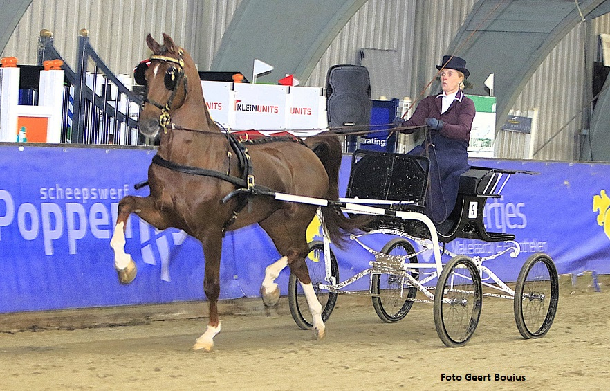 De damesrubriek werd gespitst in twee groepjes, één voor de vierwielige concourswagen en één voor de luxe tweewieler. De vier deelneemsters aan rubriek tuigpaarden gereden voor de tweewieler waren goed aan elkaar gewaagd en dus mochten er drie overrijden. Op kop ging Mieke ter Schure met de sterke hengst Parolus, gevolgd door Grietje Naber met Julius en Evelien Corbeek met Miraculeus (v. Cizandro) van Alwin van der Veen. Parolus verloor nu iets aan kracht en moest de overwinning laten aan Julius, die zowaar nog deftiger was als in de limietklasse. De vos verkeerd in topvorm en besluit de avond en het seizoen met twee overwinningen. De prijs voor het schoonste geheel ging naar de vierde geplaatste Els Nijenhuis met de negentienjarige Cetrienus (v. Vulcano) van Rony Beuving.